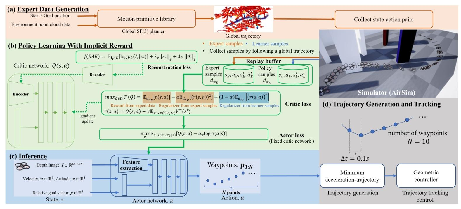 推荐理由: 该论文首次成功地将逆向强化学习(IRL)框架应用于无人机的高速视觉导航任务,有效解决了传统学习方法中模仿学习的复合误差和强化学习的奖励设计难题 。该方法在纯仿真环境中训练,却能直接部署于真实世界的复杂场景并实现卓越性能,成功跨越了仿真到现实的鸿沟,在真实飞行中达到了平均7m/s,最高8.8m/s的惊人速度 。