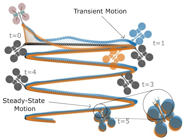 论文内容:作者指出,以往研究在比较强化学习(RL)与几何控制(GC)在无人机轨迹跟踪等任务上的性能时,常因实验设置不公而得出偏向于学习方法的结论。为解决此问题,论文设计并实施了一套“公平竞争”的实验方法论。该方法论的核心是纠正三个关键的不对称性:1) 任务与优化对称:确保两种控制器都针对完全相同的任务目标函数和轨迹数据进行优化或调参。2) 数据访问对称:保证两种控制器在优化过程中能接触到相同分布的任务数据,避免因训练/调参数据与测试任务不符而导致经典控制器性能不佳。3) 前馈信息对称:给予两种控制器同等的未来轨迹信息访问权限,这对GC的性能至关重要,但在以往的基准测试中常被忽略或以次优方式实现。在搭建了该公平的仿真对比平台后,实验结果表明,经过最佳优化的GC与RL控制器之间的性能差距远小于先前文献所报告的。具体而言,GC在稳态误差上表现更优,而RL在瞬态响应(即处理大幅度初始扰动的能力)上更胜一筹。最后,通过一个模拟接球实验,论文展示了在需要极高敏捷性的瞬态任务中,RL的优势确实能够转化为更高的任务成功率。