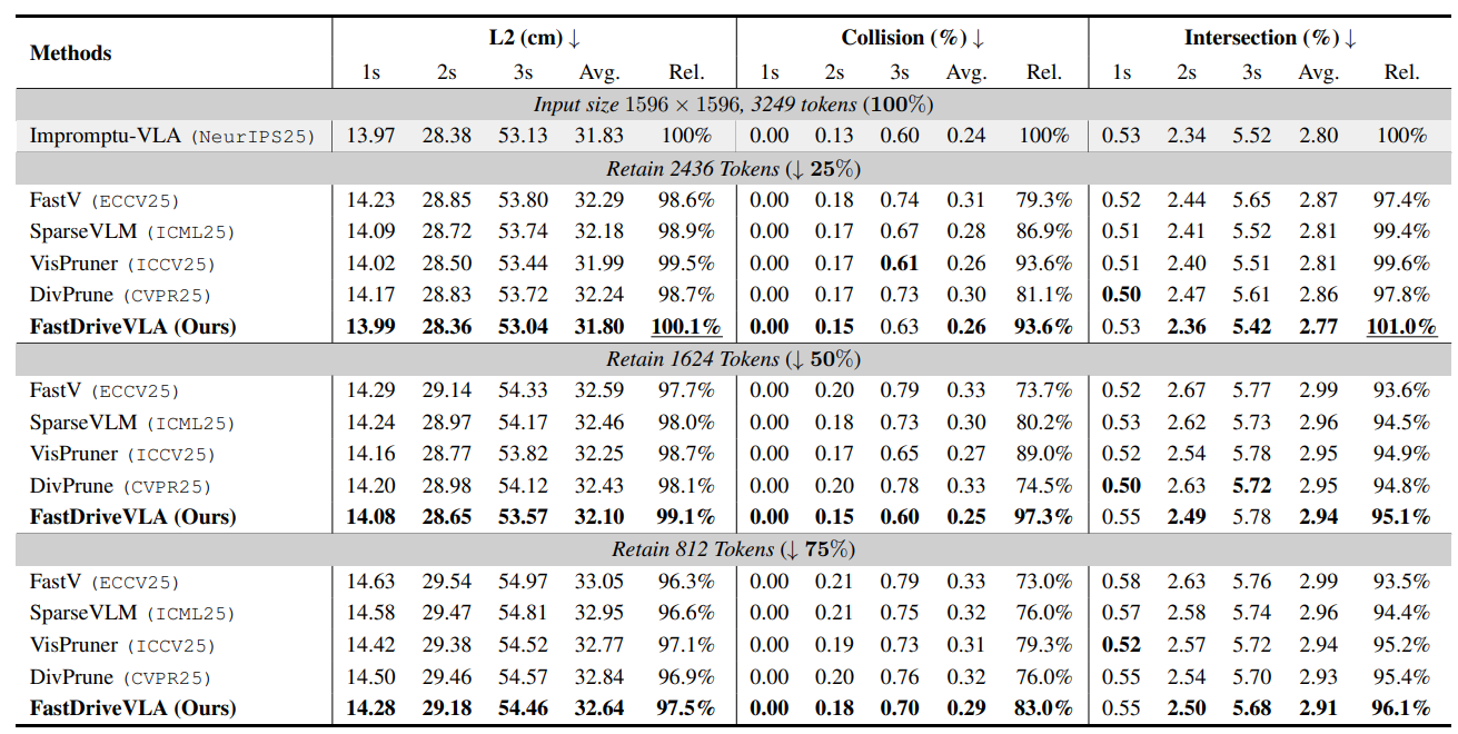 图3|Impromptu-VLA上不同剪枝方法的性能比较