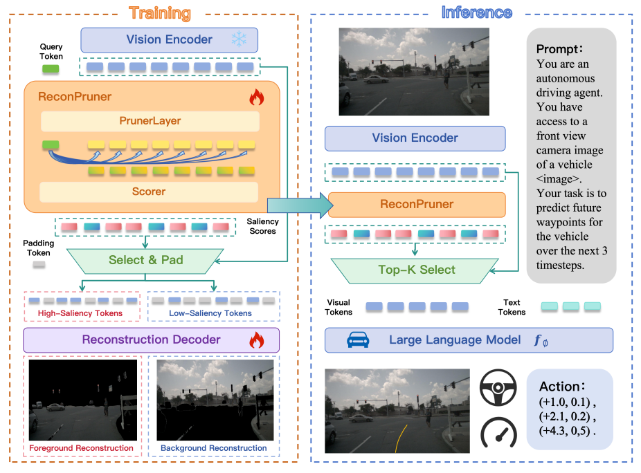 然而,现有的视觉语言模型通常将视觉输入转换为大量的视觉token,导致计算开销巨大,推理延迟增加。这对于在计算资源和推理速度都受到严重限制的实际场景中部署车辆提出了重大挑战。