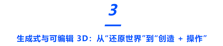 3. 生成式与可编辑 3D(从“还原世界”到“创造世界”)