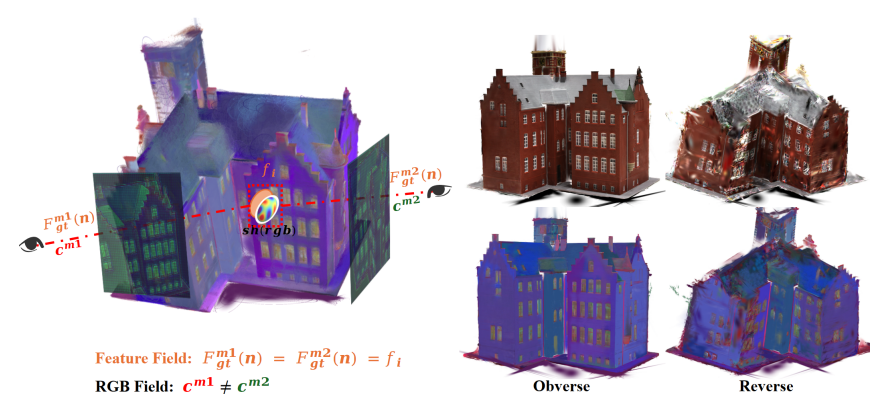 痛点:高斯颜色表示各向异性,而语义特征要求各向同性与跨视一致,直接嵌入容易“语义飘”。