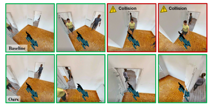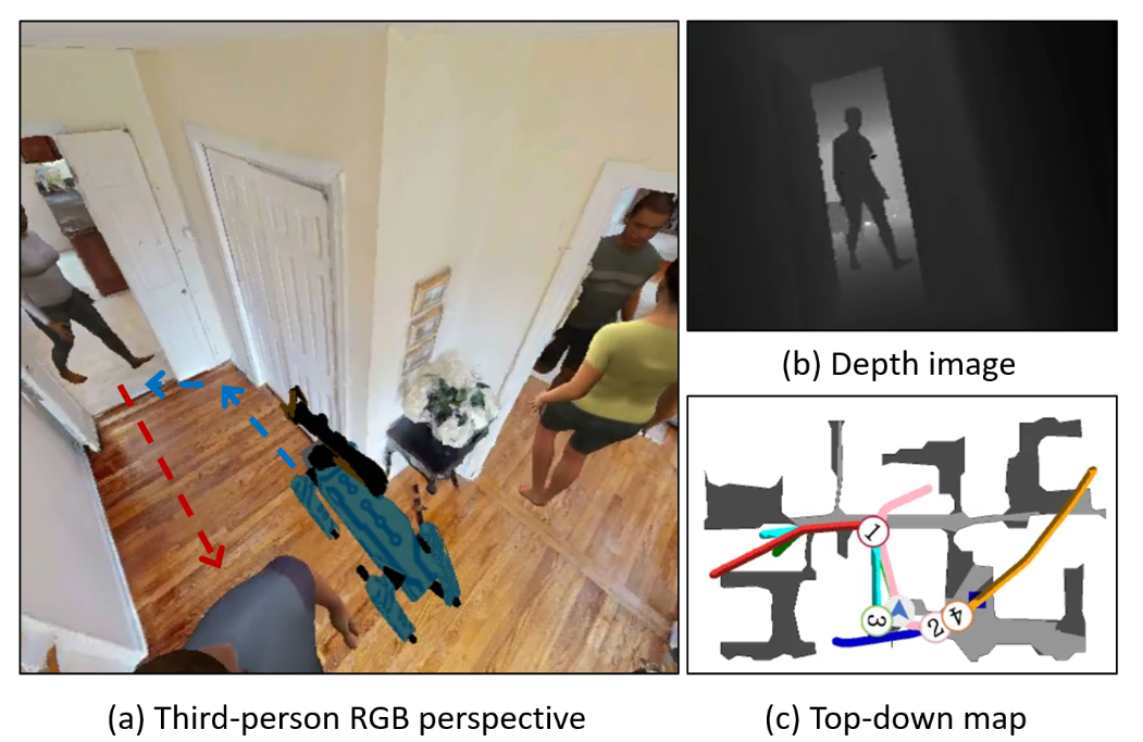 研究团队在 Social-HM3D 仿真环境中进行了大量训练与评测,该平台模拟了真实商场、走廊与广场等人群动态场景。