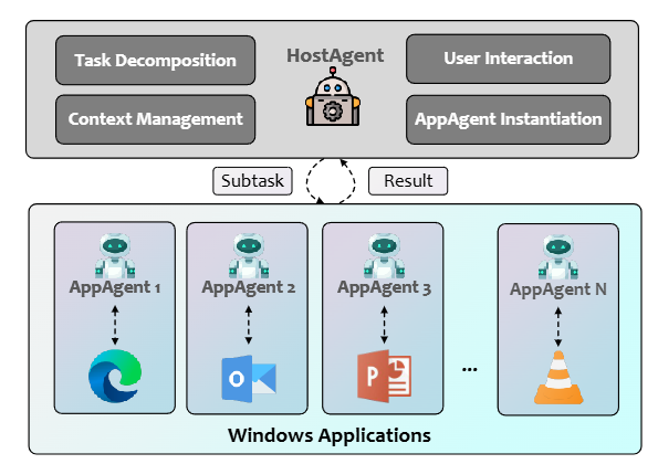 图5|WindowsAgent 的整体架构。展示基于 UFO² 扩展实现的 Windows 端智能体结构