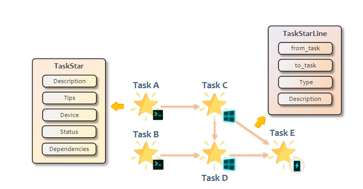 图3|任务星座示例。展示了任务之间既包含顺序依赖,也包含可并行执行的关系