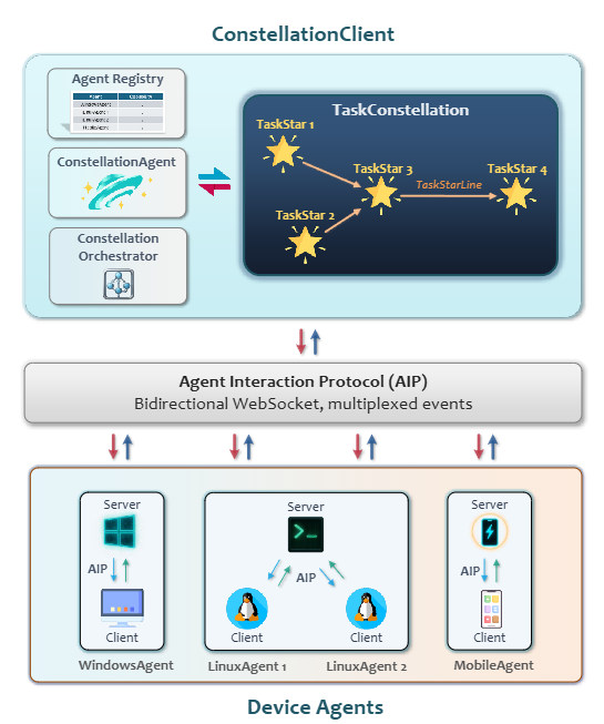 2. Constellation Orchestrator(星座调度器):负责跨设备执行计划、错误恢复、依赖解析。