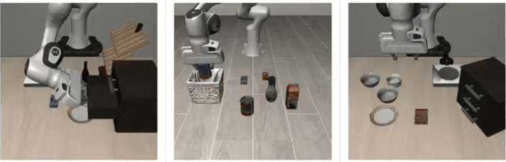 ▲图3 | 真实世界机器人设置。左:将方块放入圆圈内。中:将草莓放入杯中。右:带有干扰物的任务。