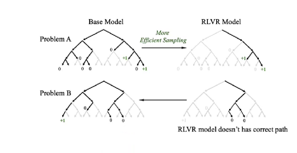 研究发现 RLVR 训练出的模型,其思维路径早就在原始基础模型的输出空间中,只是被“筛”得更准了而已。而且随着 RLVR 训练深入,模型的推理范围反而变窄了,限制了探索多样性的可能。