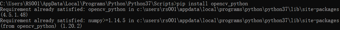 3.输入pip install opencv_python安装
