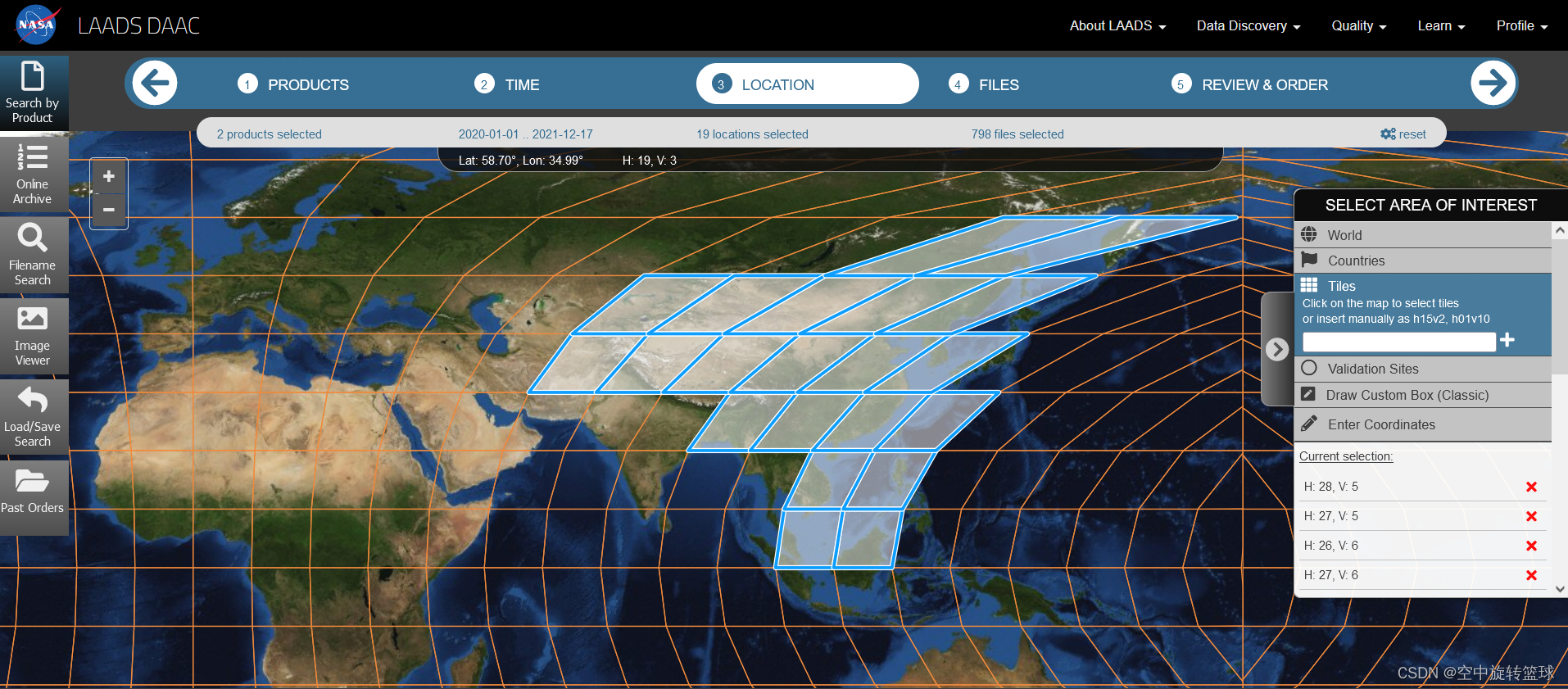 博客提及转载的MODIS中国区产品行列号分布图,还提到了LAADS DAAC。