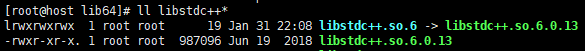 以看到当前libstdc++so.6指向13的版本,接下来把刚刚的高版本的复制到这里并重建软链即可