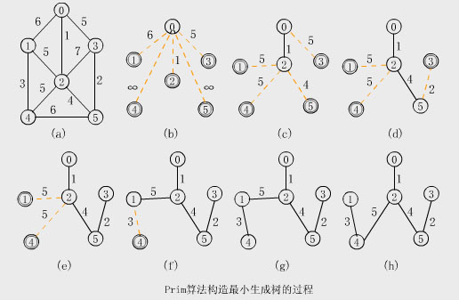 Prim算法从点入手,再加入与其有关的不产生环路的最小权重边。