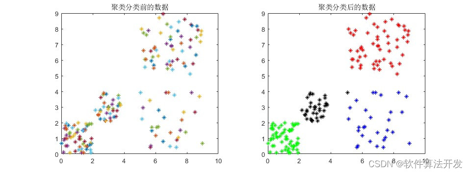 文章详细介绍了K-means聚类算法的工作原理,强调了其对初始值的敏感性,并提出改进算法以解决这些问题。还展示了在MATLAB2022a中运行的核心程序和算法流程。