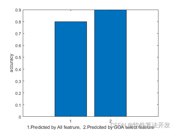 xlabel('1.Predicted by All featrure, 2.Predcited by GOA select featrure')