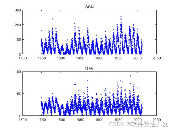 time = (length(SSN) + (XX-II)-3019);%原数据的最后一个月份+预测后的最大值 - 前一个高峰日期