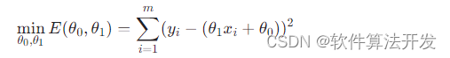 这里的参数向量θ=[θ0,θ1],分别代表截距和斜率。采用最小二乘法就是要找出使得下式最小的 θ0 和θ1: