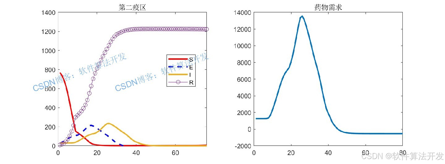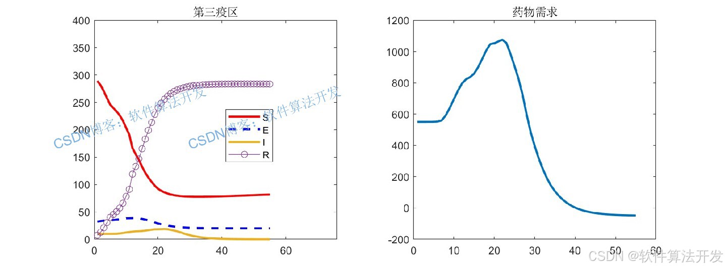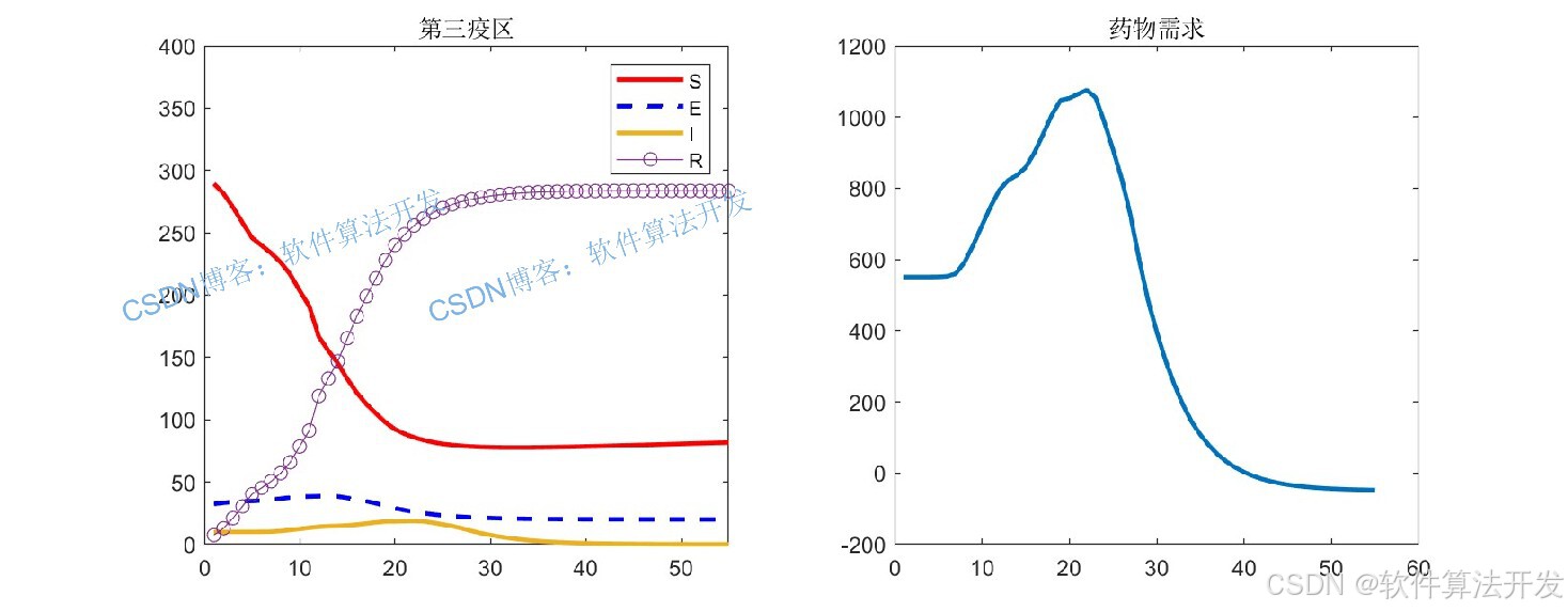 下降段(30-60 天):需求骤降并趋于 0,因感染人群(I)清零、康复人群(R)稳定,治疗需求大幅减少。