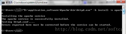 打开CMD窗口,输入:"D:\Program Files\Apache\x86\bin\httpd.exe" -k install -n apache