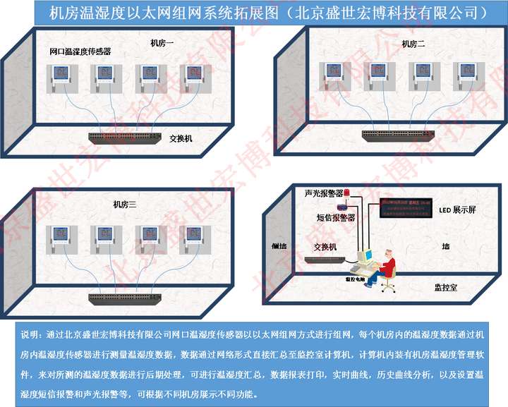 4. 数据中心与机房:监测数据中心机房、服务器机柜内的温湿度,避免因温湿度过高导致设备过热损坏,保障服务器、网络设备等稳定运行,减少设备故障停机时间。