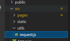 我们通过分装思路来看 第一步 (基于原生的promise来封装),我在自己的所创建的项目文件下 找到src目录 在其下创建 utils 目录 (目录名 可以自己自定义一哈),然后我们在util 目录下创建 封装请求的一个 request.js 文件