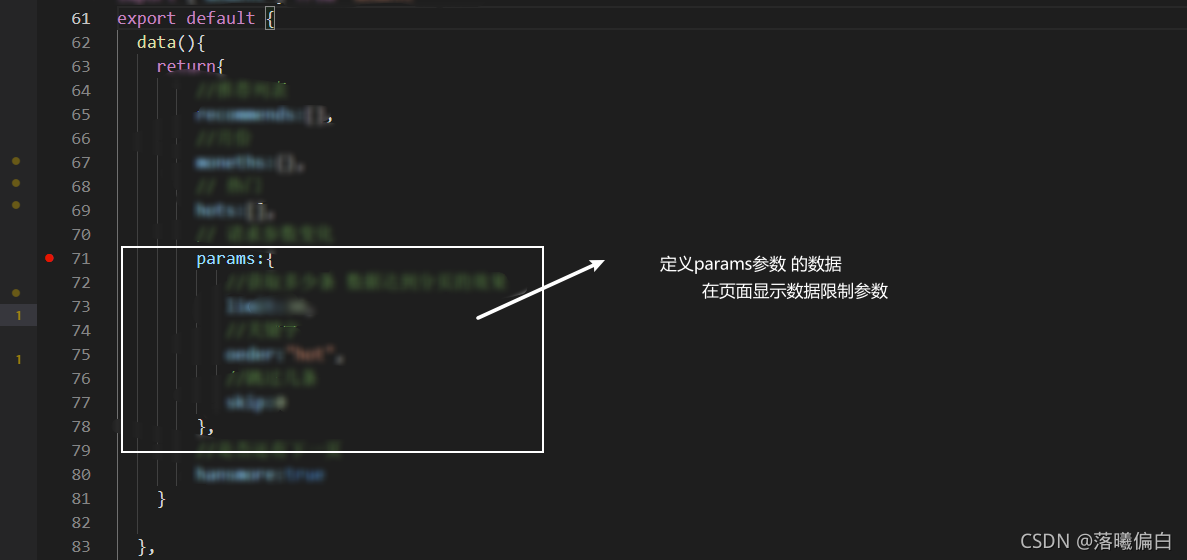 我们找到自己所要使用请求封装的请求封装文件的 index.vue(你们自己创建的vue文件)文件,然后找到 export default {}代码块,去写请求时的参数 data 返回的数据