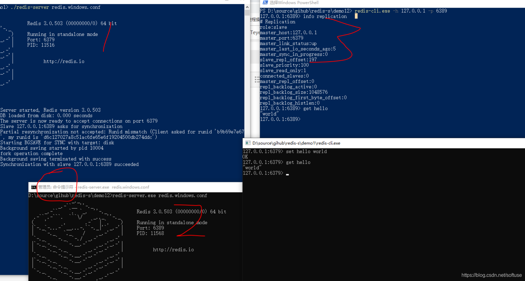 3. 在从服务器目录: 运行 redis-cli.exe -h 127.0.0.1 -p 6389 切换到从服务器端口