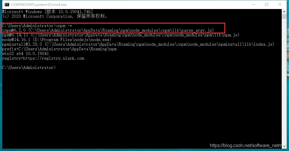 出现cnpm 版本号,则表示安装成功