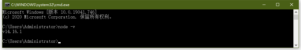 6.cmd命令窗口出现node.js版本号,则表示安装成功;如下图所示: