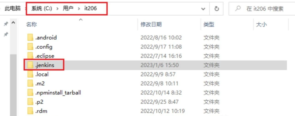 1、第一次运行jenkins后,会在C盘的用户目录中,生成一个.jenkins文件夹,进入到该文件夹