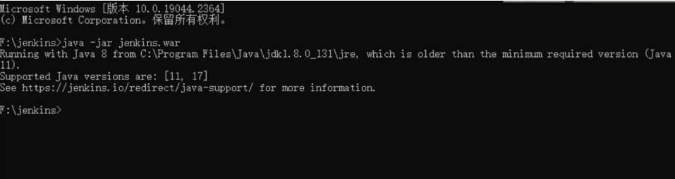 此时,你要么就升级你的JDK,要么就换一个低版本的jenkins,推荐换一个低版本的jenkins,因为JDK版本升级的话影响太广泛了