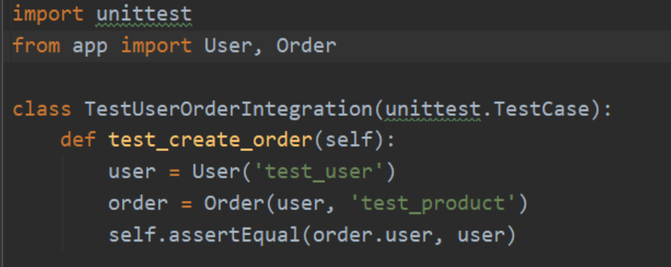 例如,编写一个测试用例来测试用户管理模块和订单管理模块之间的交互: