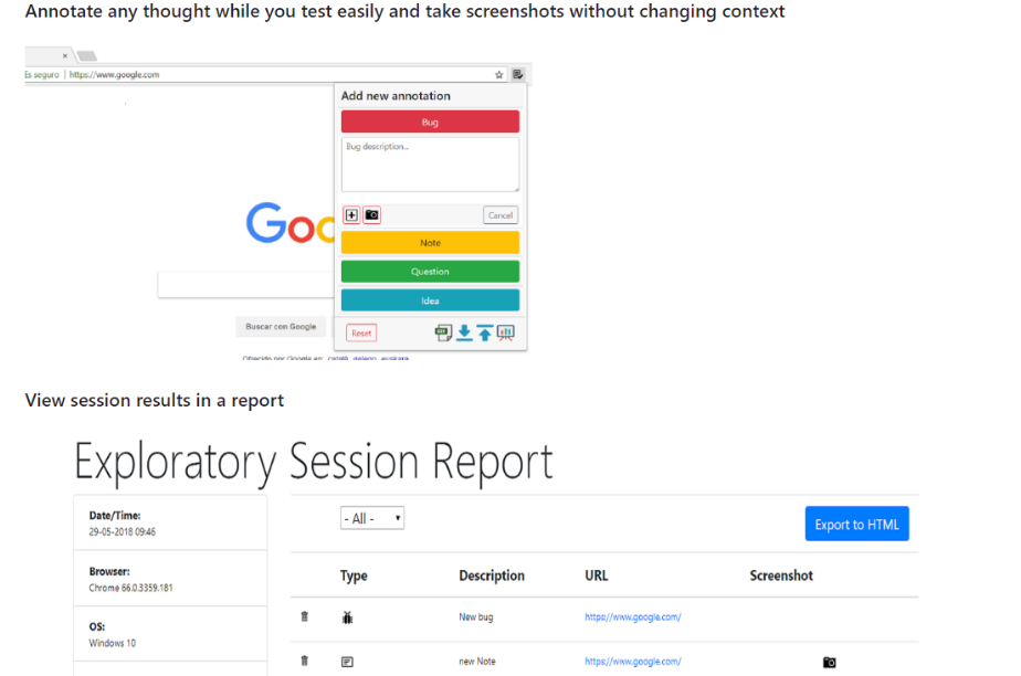 它可以帮助你在探索性测试会话中捕获错误并发送反馈