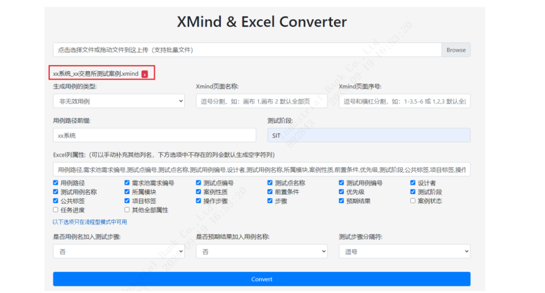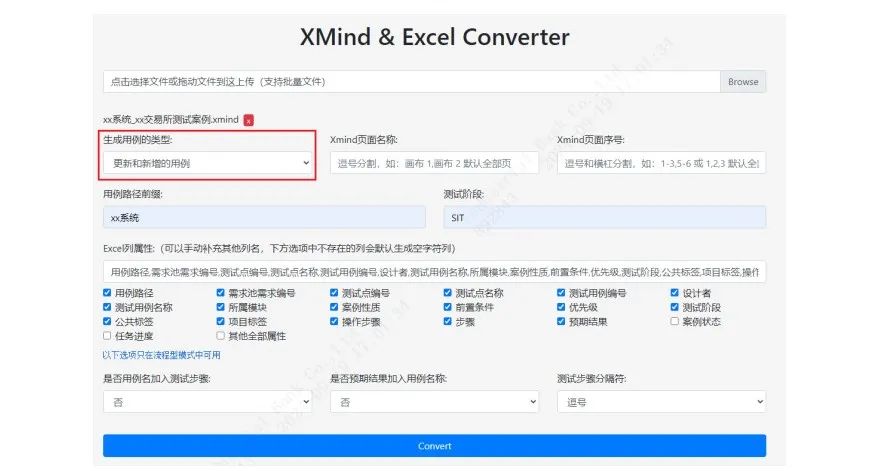 Step2:用XCase工具将XMind转换为Excel格式。