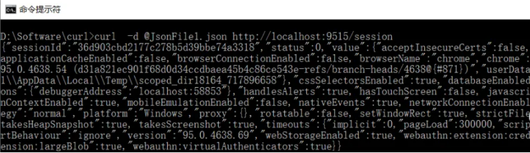 另起一个命令提示符,执行curl命令(注意端口号),记住返回的sessionId。