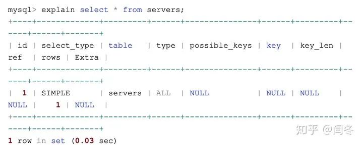mysql> explain select * from servers;