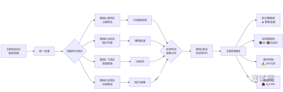 缺陷记录:详细记录各路线各节点荔枝腐坏情况(功能缺陷)、延误原因(性能瓶颈:如马倒=服务器宕机、路坏=网络中断)。
