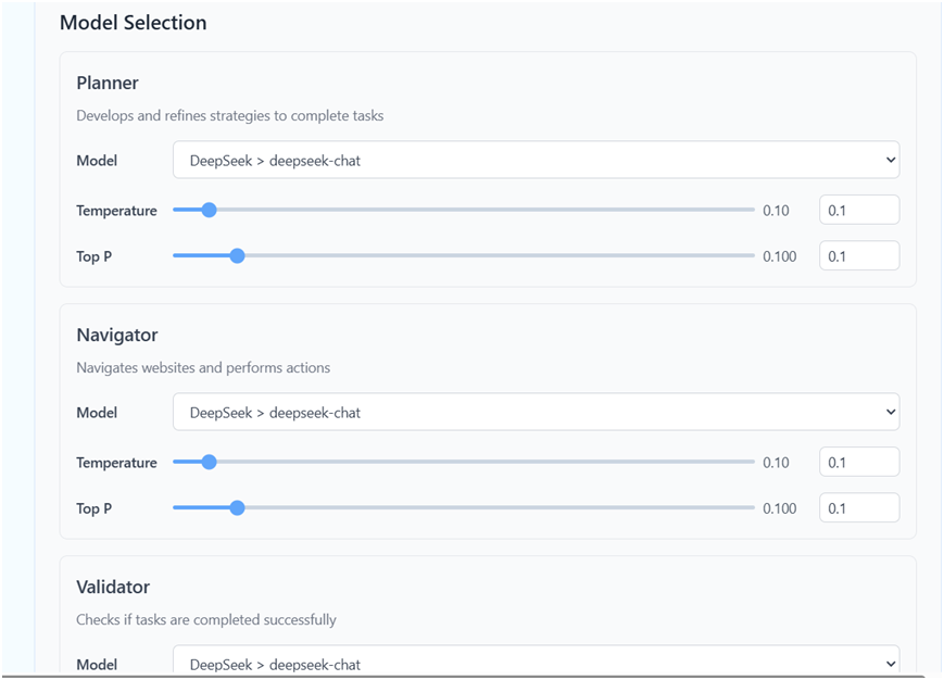 选择不同智能体(导航器、规划器、验证器)使用的模型。