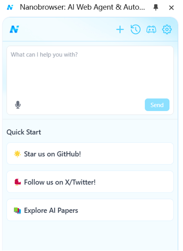 点击工具栏中的Nanobrowser图标以打开侧边栏。