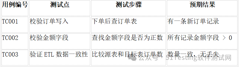 数据测试也要写清晰的用例,列明预期值、验证方式、来源表名等。