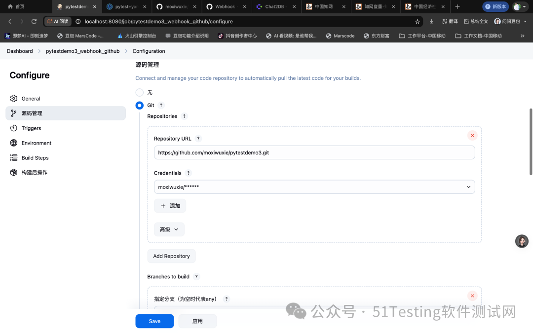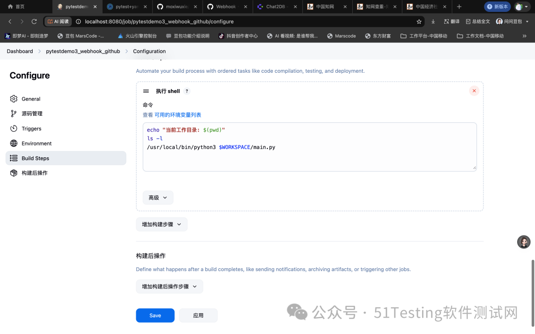 而后需要在cicd工具当中配置构建对应的项目,例如jenkins