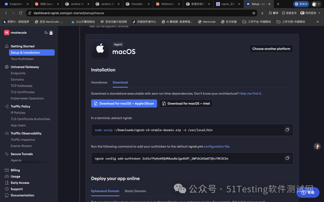 首先进入ngrok官网https://ngrok.com/,下载对应系统的app压缩包。我用的是mac所以下载mac版的。