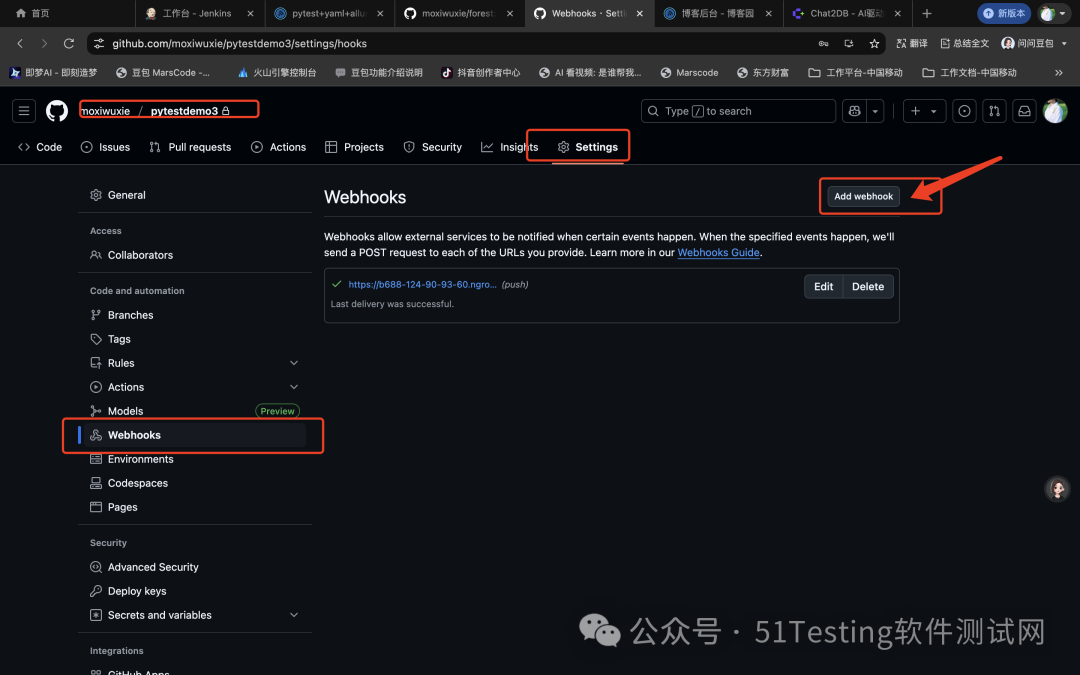 webhook的实现其实在网上是有比较详细的介绍的。我本身也是通过豆包搜索一步一步进行实现的。