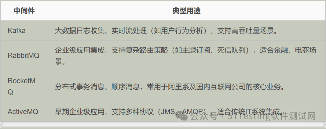 常见消息中间件及其典型用途