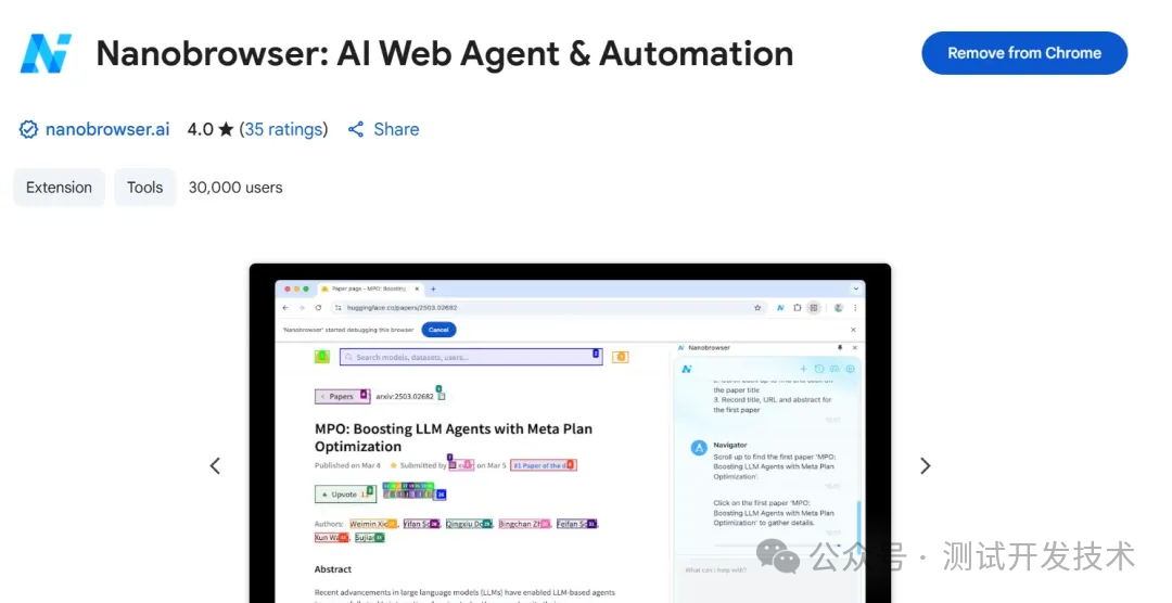 简单来说,Nanobrowser 是一个运行在你自己浏览器里的开源AI网页自动化助手。它不是一个独立的软件,而是一个Chrome扩展程序(也支持Edge),通过结合强大的大语言模型(LLM)和精心设计的“多智能体系统”,让你能够以近乎自然语言的方式,指挥浏览器自动完成各种复杂的网页任务。