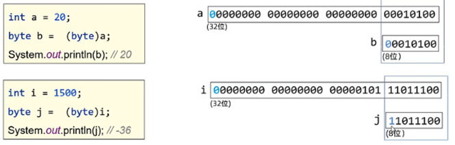 System.out.println(j);此处理想输出结果应是1500,但由于int位数远大于byte,导致最终结果改变为-36.