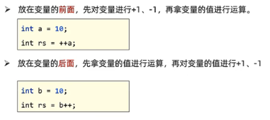 ①++和—单独使用时,既可以放在变量后边,也可以放在变量前边