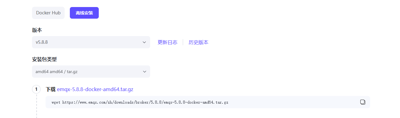 1. 下载离线镜像压缩包,我这里演示是5.8.3的,历史版本里面下载 下载 EMQX 开源版
