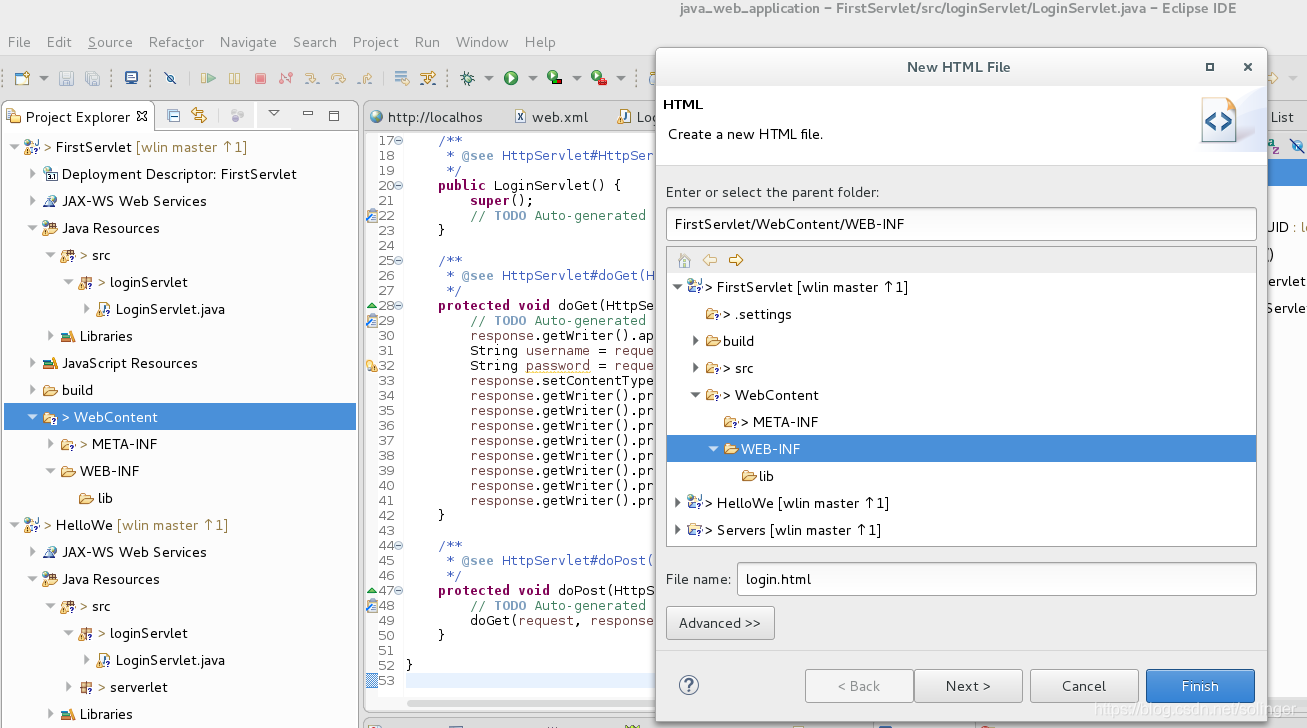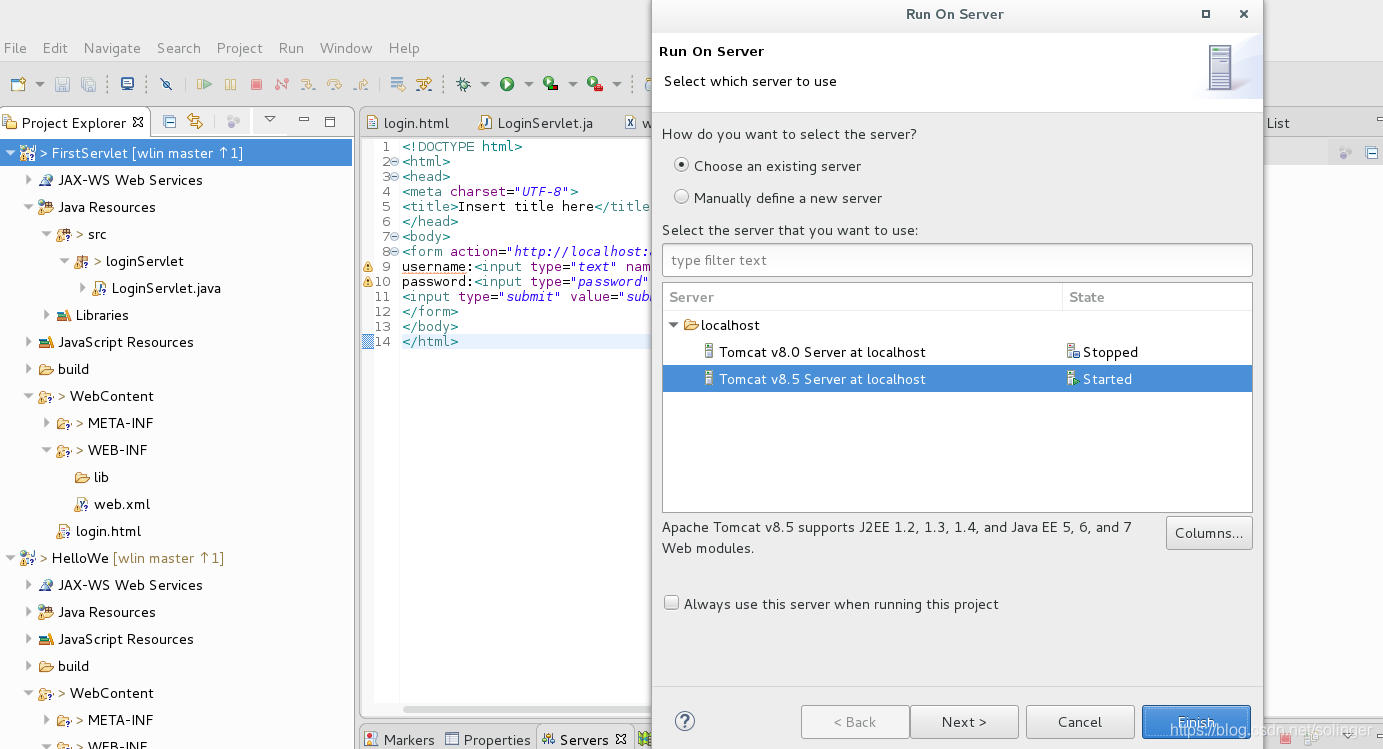 启动服务器,然后访问http://localhost:8080/FirstServlet/login.html提交