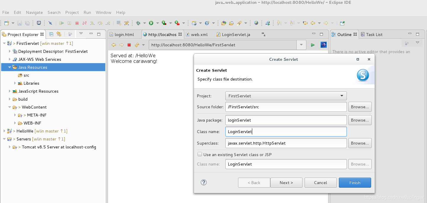 让我们使用Eclipse用servelt写一个最简单的动态登陆服务