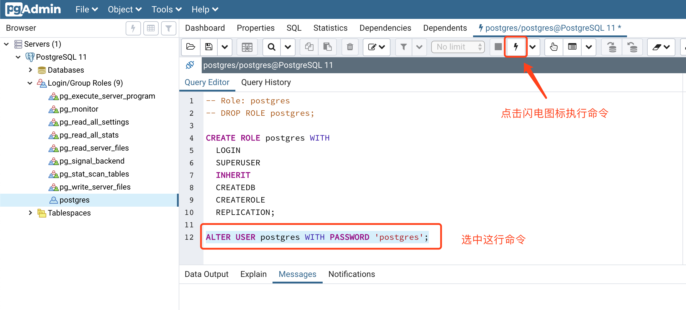 这里修改的是用户名为 postgres 的用户,数据库默认的用户也是这个。如果你想修改其他用户,将 postgres 改成对应的用户名, xxx 换成你想修改的密码就可以了。